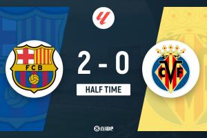 半场-巴萨2-0比利亚雷亚尔 亚马尔双响+精彩内切兜射费尔明2助