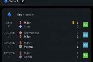 上一篇: 半场-AC米兰暂1-0国际米兰 埃斯图皮尼安处子球福法纳献助攻