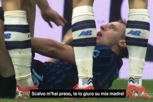 转播方:弗拉泰西用母亲发誓被斯卡尔维尼踢到了,后者说没踢到他